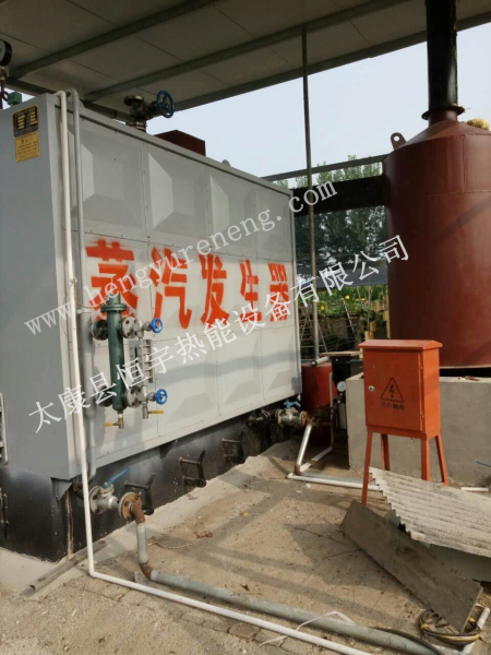 臥式1噸燃煤、燃柴、生物質(zhì)顆粒三用節(jié)能環(huán)保蒸汽發(fā)生器,河北用戶食品加工廠用的,帶夾層鍋、殺菌鍋等